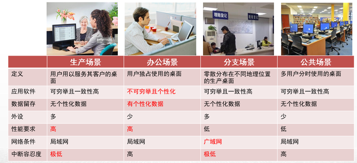 前面簡略提到了諸如“生產場景”、“辦公場景”這樣的概念。現(xiàn)在我們不妨再把云桌面使用的各種場景詳細說說。