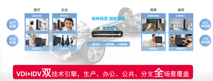 與汽車領域的混合動力解法相同,當前云桌面領域的最佳解法,就是讓VDI與IDV這“雙擎”同時出現(xiàn)在一個方案之中,根據用戶的應用場景靈活選配,而身份、策略、數(shù)據、管理可以實現(xiàn)統(tǒng)一,豈不美哉。